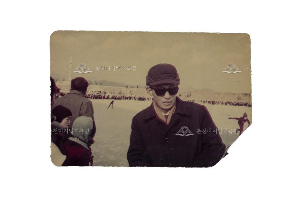 춘천시장기 빙상경기대회 기념사진 등록번호 00000783 생산일자 1969.01.09 생산지역 춘천시 근화동 생산자 미상 수집처 지희준 소장자 춘천학연구소 내용 1969년 1월 근화동 공지천에서 개최된 춘천시장기 빙상경기대회장에서 촬영한 기념사진이다. 뒤로 선수들의 모습이 보인다. 사용안내 비상업적 이용만 가능|©춘천디지털기록관 상업적 사용·수정·재배포는 저작권자 동의 필요 다운로드 목록보기