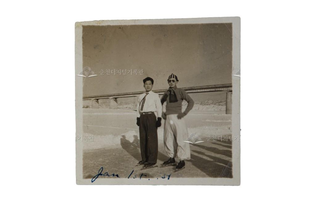 1950년대 소양강 스케이트장 사진 등록번호 00000789 생산일자 1951.01.20 생산지역 춘천시 신사우동 우두동 생산자 미상 수집처 지희준 소장자 춘천학연구소 내용 1955년 겨울, 꽁꽁 얼어붙은 소양강에서 스케이트를 타는 두 남성을 촬영한 사진이다. 뒤로 소양1교가 보인다. 사용안내 비상업적 이용만 가능|©춘천디지털기록관 상업적 사용·수정·재배포는 저작권자 동의 필요 다운로드 목록보기