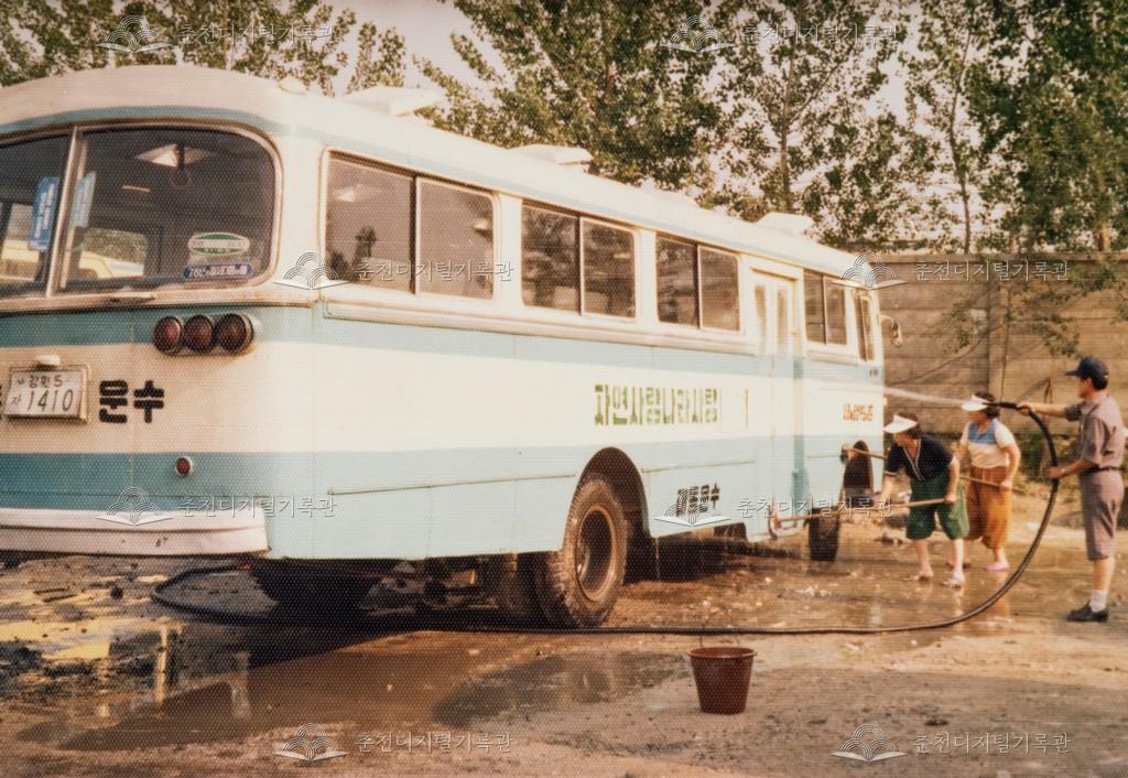 대동 · 대한운수 주식회사 시설 사진 등록번호 00000802 생산일자 미상 생산지역 춘천시 생산자 대동 · 대한운수 주식회사 수집처 춘천시민버스 소장자 춘천학연구소 내용 춘천 시내버스 운송 회사였던 대동 · 대한운수 주식회사의 시설 사진이다. 비포장 주차장에 세워져 있는 버스, 비포장 세차장에서 세차를 하는 모습, 주차장 화장실의 도색 불량과 개선 후 모습을 볼 수 있다. [사진 발췌] 대한운수 주식회사 사진첩 중 자세히 보기 닫기 사용안내 비상업적 이용만 가능|©춘천디지털기록관 상업적 사용·수정·재배포는 저작권자 동의 필요 다운로드 목록보기