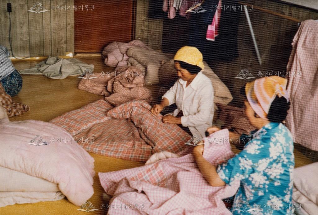 대동 · 대한운수 주식회사 기숙사 사진 등록번호 00000832 생산일자 미상 생산지역 춘천시 생산자 대동 · 대한운수 주식회사 수집처 춘천시민버스 소장자 춘천학연구소 내용 춘천 시내버스 운송 회사였던 대동 · 대한운수 주식회사의 기숙사의 침구를 수선하는 모습이 보인다. 기숙사의 침구는 매년 봄, 가을마다 세탁을 했다. [사진 발췌] 대동운수 주식회사 사진첩 중 자세히 보기 닫기 사용안내 비상업적 이용만 가능|©춘천디지털기록관 상업적 사용·수정·재배포는 저작권자 동의 필요 다운로드 목록보기