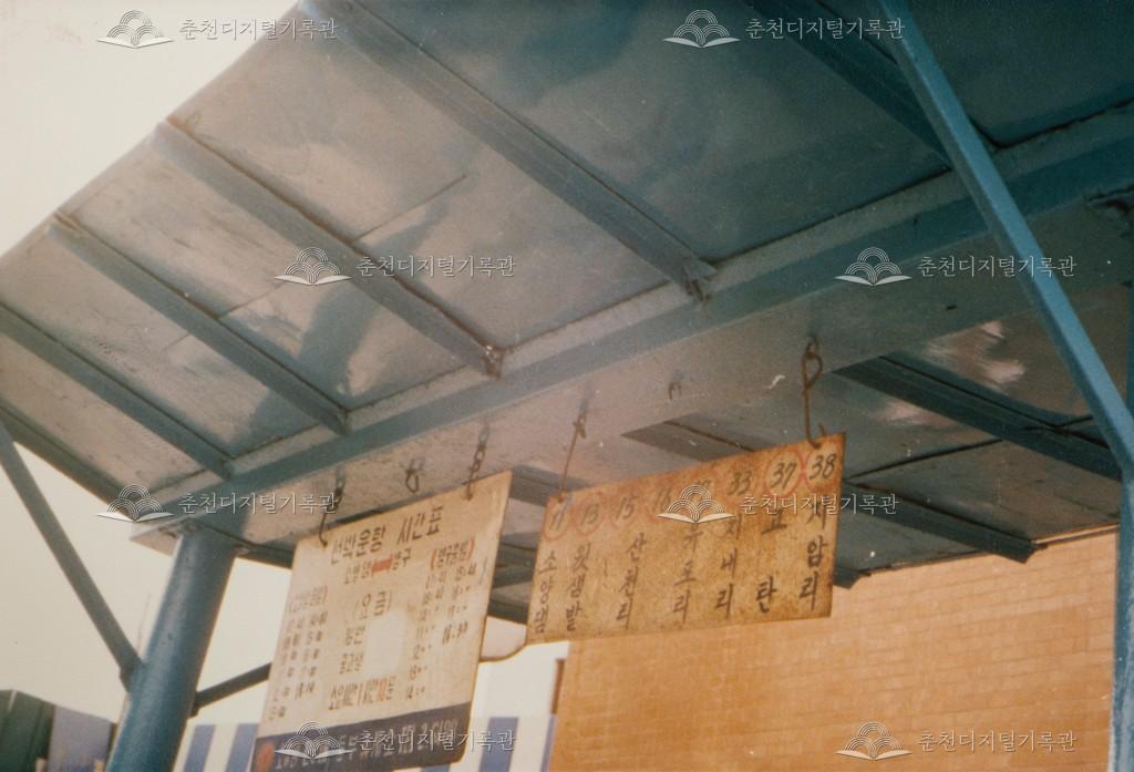 춘천 시내버스 운송 회사였던 대동 · 대한운수 주식회사의 버스 정류소 정비 사진이다. 새로이 도색을 하여 정비된 모습을 볼 수 있다. 버스 정류소 안내판 옆에 소양강댐 전망대 동부휴게소의 번호와 소양강댐과 양구를 오가는 선박의 운항 시간표가 함께 걸려 있다.