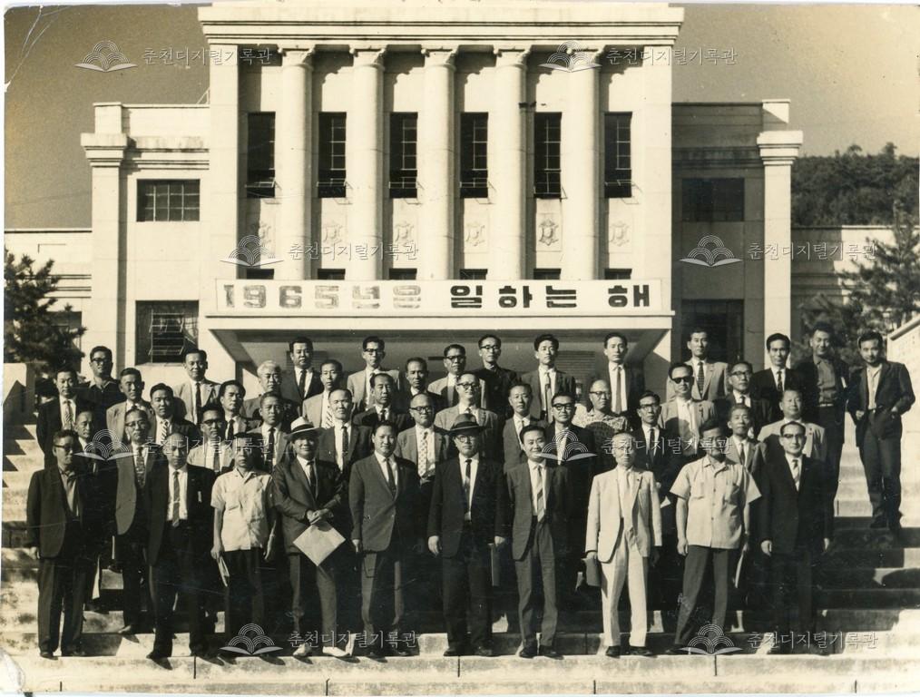 이창근 제10대 강원도지사 이임 기념 앨범 수록 사진 등록번호 00000887 생산일자 미상 생산지역 춘천시 소양동 봉의동 생산자 강원도청 수집처 미상 소장자 춘천학연구소 내용 본 사진은 제10대 강원도지사 이창근(李昌根)의 이임을 기념하여 제작된 「이창근 지사 이임 기념 앨범」에 수록된 도정활동 기록 사진이다. 도청을 배경으로 단체사진을 촬영했다. 자세히 보기 닫기 사용안내 비상업적 이용만 가능|©춘천디지털기록관 상업적 사용·수정·재배포는 저작권자 동의 필요 다운로드 목록보기