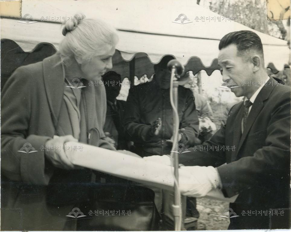 이창근 제10대 강원도지사 이임 기념 앨범 수록 사진 등록번호 00000890 생산일자 1960.11.12 생산지역 철원군 생산자 강원도청 수집처 미상 소장자 춘천학연구소 내용 본 사진은 제10대 강원도지사 이창근(李昌根)의 이임을 기념하여 제작된 「이창근 지사 이임 기념 앨범」에 수록된 도정활동 기록 사진 중 마그루드 장군 송덕탑 제막식을 기념하여 촬영한 것이다. 자세히 보기 닫기 사용안내 비상업적 이용만 가능|©춘천디지털기록관 상업적 사용·수정·재배포는 저작권자 동의 필요 다운로드 목록보기