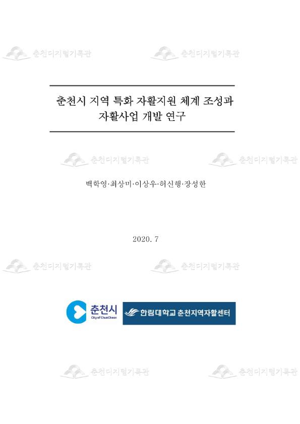 춘천시 지역 특화 자활지원 체계 조성과 자활사업 개발 연구