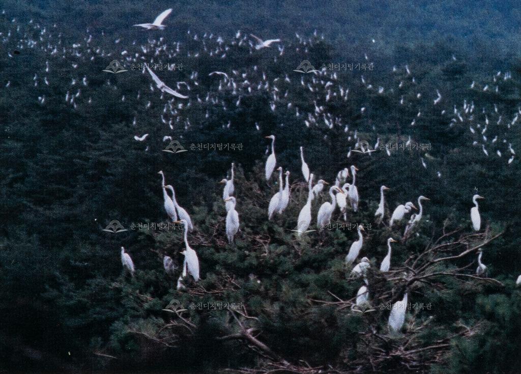 춘천시 동면 만천2리 백학부락 뒤로 낮은 구릉지대(丘陵地帶)에 울창한 송림(松林)위에 백로(白鷺) 및 왜가리가 집을 짓고 번식(繁殖)하고 있다.