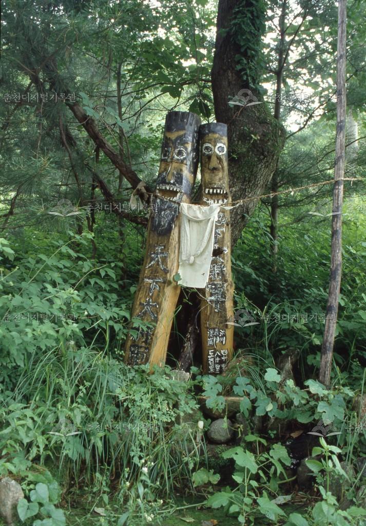 밭치리 장승 등록번호 00016610 생산일자 미상 생산지역 동산면 밭치리 생산자 미상 수집처 이경애 소장자 이경애 내용 1990년대 동산면 전치곡리(밭치리) 마을입구의 장승 사용안내 비상업적 이용만 가능|©춘천디지털기록관 상업적 사용·수정·재배포는 저작권자 동의 필요 다운로드 목록보기