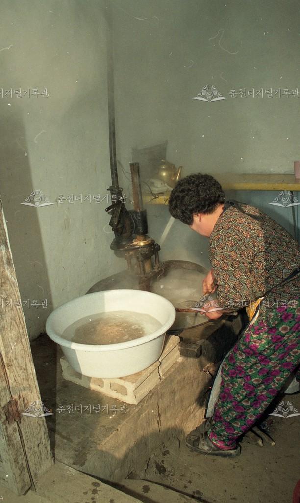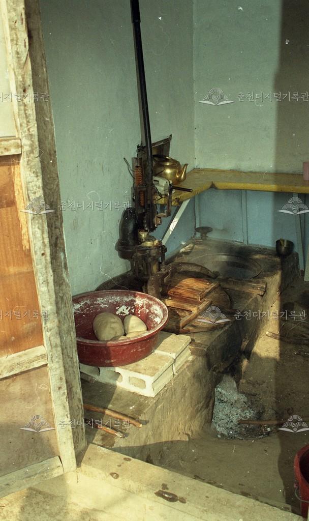 1980년대 막국수 기계와 막국수를 뽑는 모습 등록번호 00016576 생산일자 미상 생산지역 남면 가정리 생산자 미상 수집처 이경애 소장자 이경애 내용 막국수 틀과 반죽, 그리고 나무를 때어 익히던 아궁이가 보인다. 1980년대 남면 가정리 민가에서 막국수를 팔던 주방 풍경이다. 자세히 보기 닫기 사용안내 비상업적 이용만 가능|©춘천디지털기록관 상업적 사용·수정·재배포는 저작권자 동의 필요 다운로드 목록보기