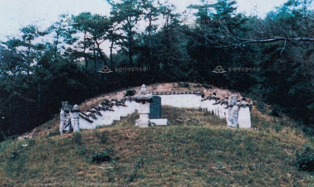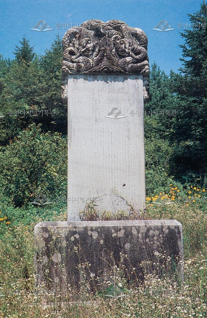 비대(碑臺)는 네모난 큰 돌을 다듬이 비신을 받치게 함으로써 비석의 품위를 높이고 안정감을 주고 있다. 『춘주문화재(1988)』 사진,내용 발췌