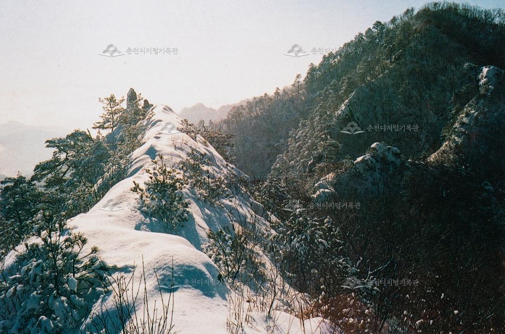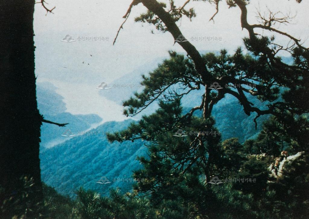 오봉산(五峯山) 능선(綾線)길 어디에서나 내려다 보이는 호수(湖水)의 풍광(風光)은 어찌 아름다움만을 감탄(感嘆)하리. 『춘주문화재(1988)』 사진,내용 발췌