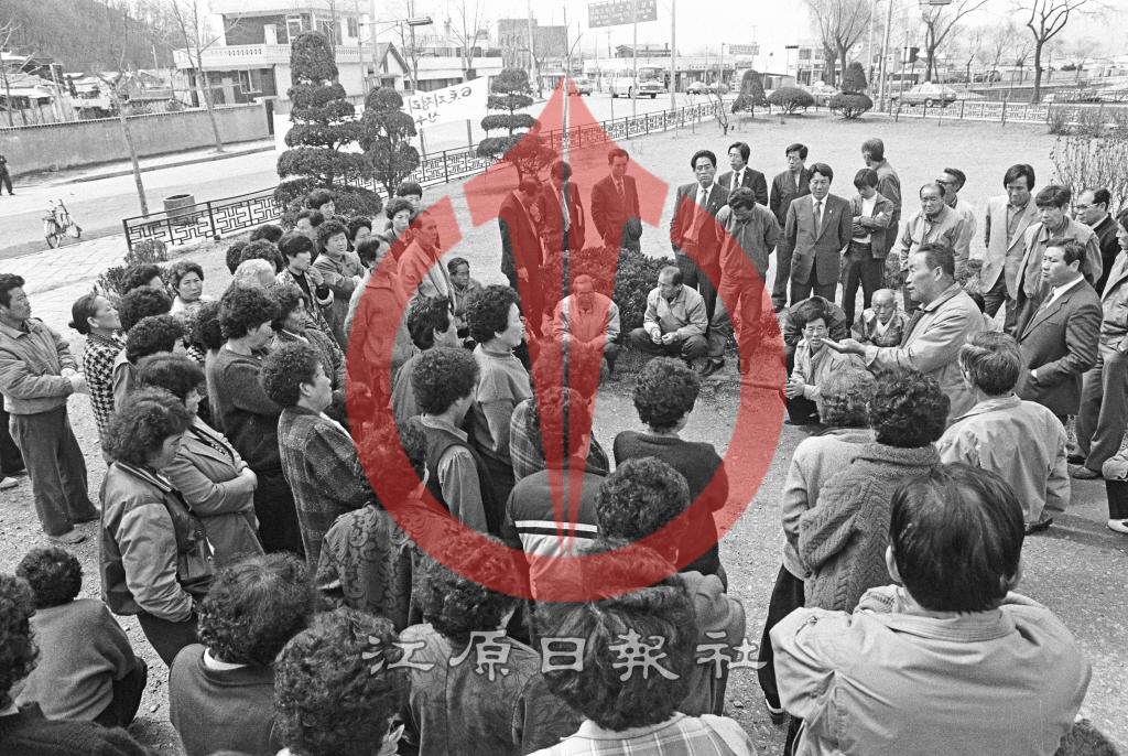 토지개발공사 주택개발지 보상현실화시위 등록번호 00018613 생산일자 1987.11 생산지역 석사동 생산자 강원일보 수집처 강원일보 소장자 강원일보 내용 석사동 주민들 주택개발지 보상현실화 시위 토지개발공사 농성 사용안내 © 강원일보 | 본 사진은 저작권법의 보호를 받습니다. 무단 복제·활용 시 민형사상 책임이 발생할 수 있습니다. ※ 사용 문의: 강원일보 자료조사부 033-258-1396 목록보기