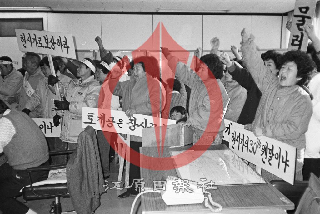 토지개발공사 주택개발지 보상현실화시위 등록번호 00018616 생산일자 1988.12.06 생산지역 석사동 생산자 강원일보 수집처 강원일보 소장자 강원일보 내용 석사동 주민 주택개발지 보상현실화 시위 토지개발공사 농성 사용안내 © 강원일보 | 본 사진은 저작권법의 보호를 받습니다. 무단 복제·활용 시 민형사상 책임이 발생할 수 있습니다. ※ 사용 문의: 강원일보 자료조사부 033-258-1396 목록보기