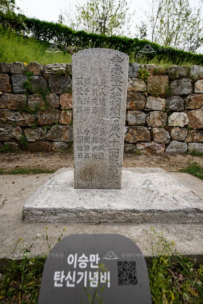 비석군 등록번호 00019305 생산일자 2021 생산지역 근화동 생산자 춘천학연구소 수집처 춘천학연구소 소장자 춘천학연구소 내용 비석군_이승만 탄신기념비 『근화동(2021)』 관련사진 사용안내 비상업적 이용만 가능|©춘천디지털기록관 상업적 사용·수정·재배포는 저작권자 동의 필요 다운로드 목록보기