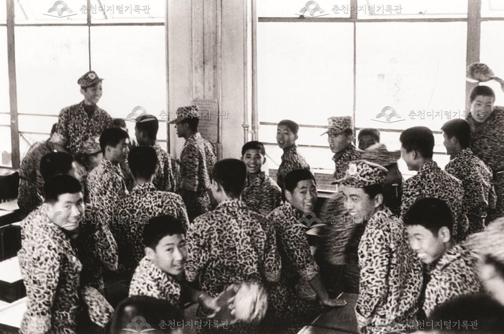 1975년 1학년 교실(제6회 신입생부터 교련복이 변경되었다.) 『강원대학교사범대학부설고등학교(강원사대부고) 50년사(2017)』 사진발췌