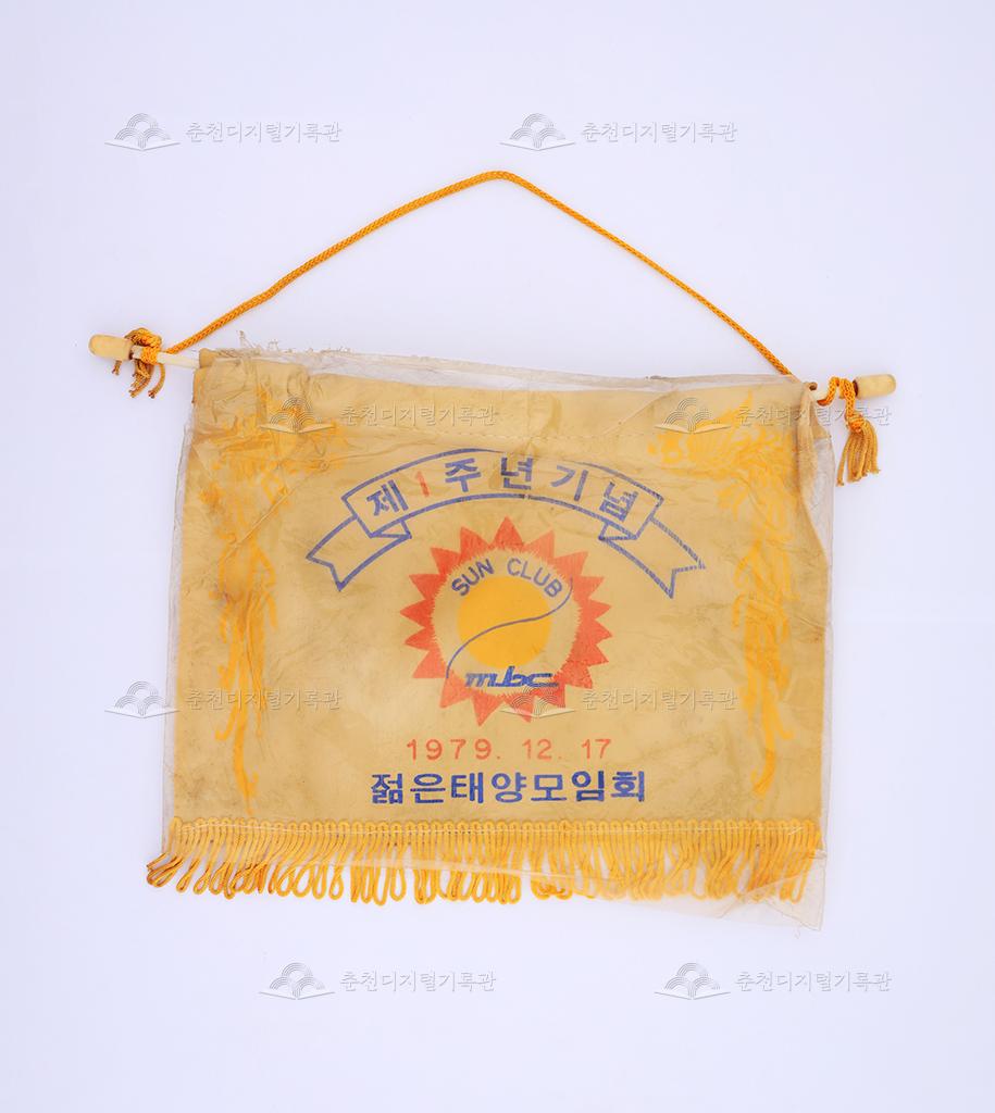 제1주년 기념 젊은태양 모임회 페넌트 등록번호 00017926 생산일자 1979.12.17 생산지역 미상 생산자 젊은태양 모임회 수집처 이춘희 소장자 춘천학연구소 내용 1979년 12월 17일, 춘천MBC 친목단체인 젊은태양모임회의 1주년을 기념하는 페넌트이다. 사용안내 비상업적 이용만 가능|©춘천디지털기록관 상업적 사용·수정·재배포는 저작권자 동의 필요 다운로드 목록보기