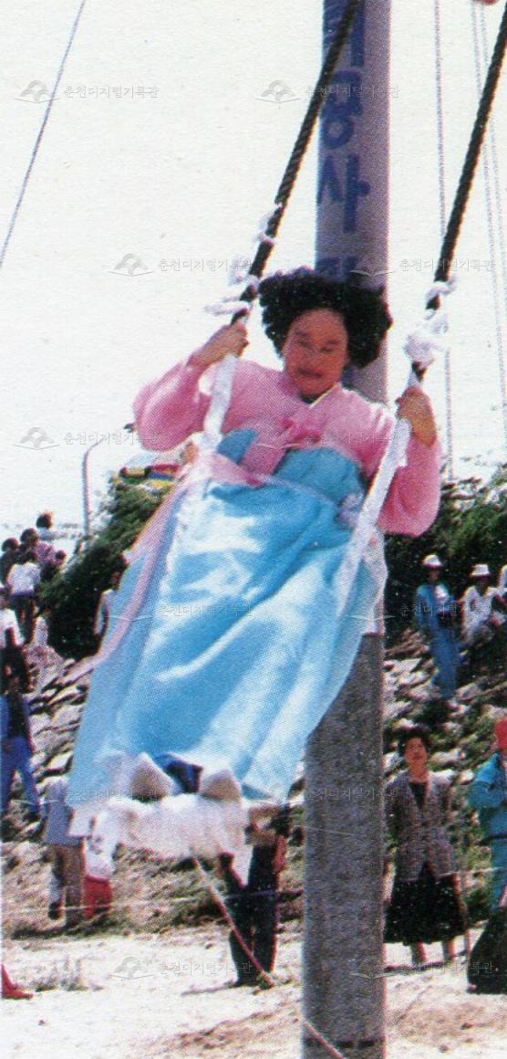 제14회 소양제 그네뛰기 등록번호 00017817 생산일자 1991.07.30 생산지역 공지천변 생산자 소양제위원회 수집처 제14회 소양제 화첩 소장자 춘천문화원 내용 문화행사 그네뛰기 『제14회 소양제 화첩(1991)』 사진발췌 사용안내 비상업적 이용만 가능|©춘천디지털기록관 상업적 사용·수정·재배포는 저작권자 동의 필요 다운로드 목록보기
