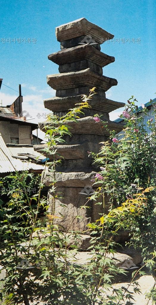 7층 석탑은 화강암으로 건조한 고려시대(高麗時代)의 전형적인 일반형 석탑이다. 이 탑의 특징은 기단(基壇)이 넓어서 안정감이 있으며 넓은 갑석(甲石) 중앙에 방형(方形)의 연화판석(蓮花板石)의 괴임대를 놓아 탑신부를 받게한 점이다. 전하는 바에 의하면 이 부근에 사찰(寺刹)이 있었다 하며 조선 인조조 (仁祖朝)(1623~1649, 재위) 충원현감(忠原縣監) 류정립(柳鼎立)이 인조반정(仁祖反正) 때 파직당하고 낙향(落鄕)하여 석등 부근에 집을 세우려고 터를 닦다가 지층에서 발견한 불기(佛器)에 충원사명(冲圓寺銘)이 있었다 한다. 이 탑도 충원사에 속하였던 것으로 추측된다. 『춘주문화재(1988)』 사진,내용 발췌