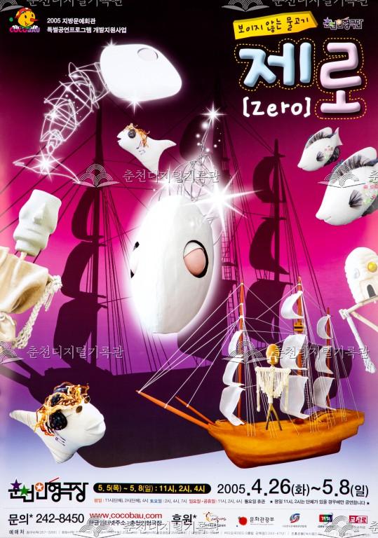 2005 보이지않는 물고기 제로_포스터 등록번호 00018812 생산일자 2005 생산지역 춘천 생산자 춘천인형극장 수집처 춘천인형극장 소장자 춘천인형극장 내용 춘천인형극제 재단기획 공연 사용안내 비상업적 이용만 가능|©춘천디지털기록관 상업적 사용·수정·재배포는 저작권자 동의 필요 다운로드 목록보기