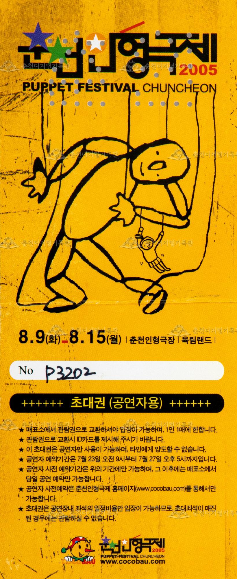 2005 춘천인형극제초대권이다.