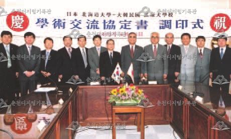 북해도대학 학술교류협정서 조인식(2003.06.13.) 『강원대학교 60년_개교 60주년 기념 화보집(2008)』 사진발췌