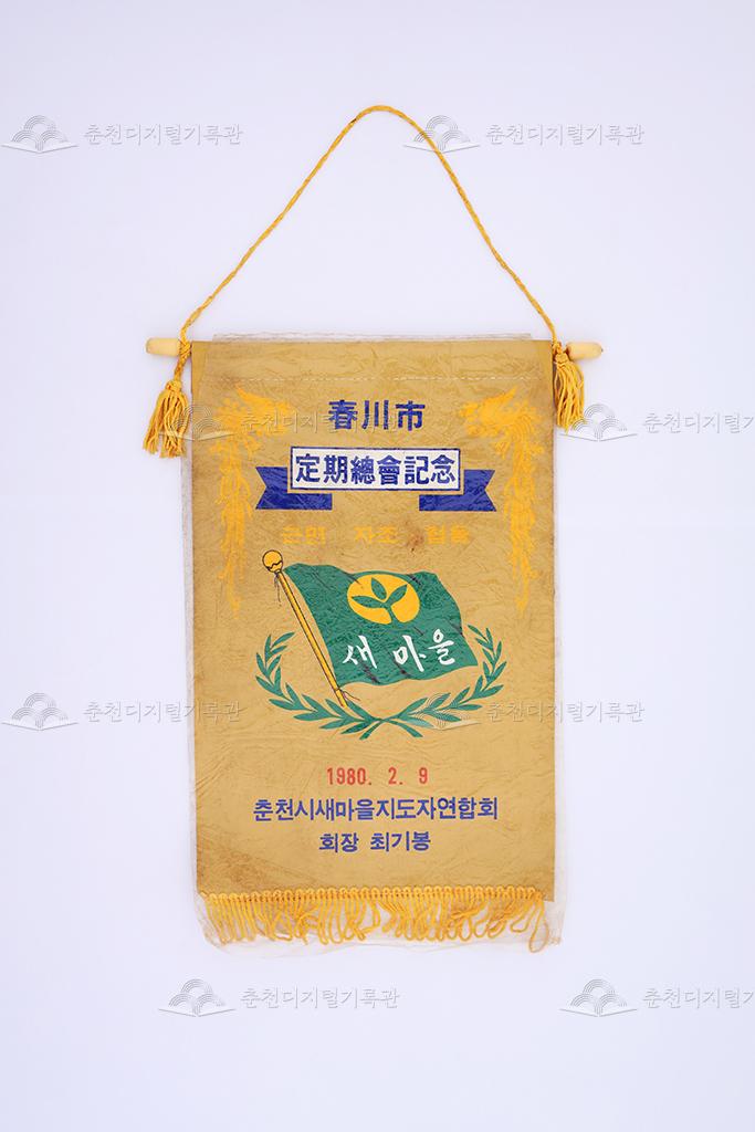 1980년 2월 9일, 춘천시새마을지도자연합회에서 춘천시 정기총회를 기념하기 위해 제작된 페넌트이다. 당시 춘천시새마을지도자연합회 회장은 최기봉이었다. 새마을운동은 1970년대 박정희 정부의 주도 아래 전국적으로 이루어진 지역 사회 개발 운동으로 '근면, 자조, 협동'이라는 구호 아래 농촌과 도시에서 다양한 환경개선 운동을 펼쳤다.가운데 새마을운동의 심볼이 그려져 있는데 녹색바탕은 농촌의 녹색혁명을 상징하며 황색원은 협동과 부, 무한한 가능성을 내포하고 있다. 녹색의 잎과 싹은 근면, 자조, 협동의 새마을 정신 및 희망과 소득을 상징하고 줄기의 밑이 넓은 것은 안정과 번영을 뜻한다.