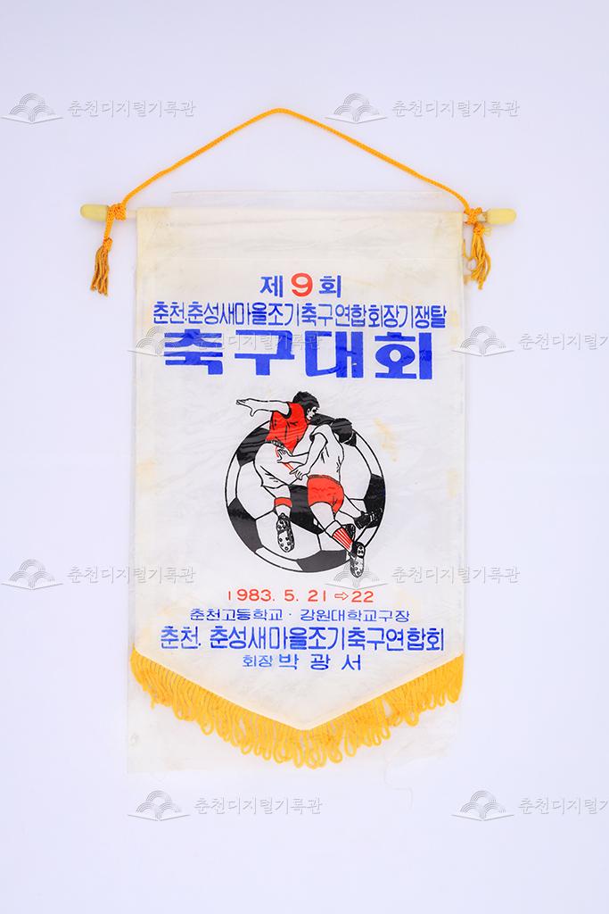 1983년 5월 21일에서 22일까지 춘천고등학교와 강원대학교 운동장에서 개최된 제9회 춘천춘성새마을조기축구연합회장기쟁탈 축구대회를 기념하기 위해 제작된 페넌트이다. 당시 춘천춘성새마을조기축구연합회 회장은 박광서이다. 1895년 23부제 실시로 춘천부 춘천군이 설치되었다가 1896년 23부제가 폐지되고 13도제가 시행되며 춘천군이 되었다. 춘천군의 부내면에서 1917년 춘천군의 부내면에서 춘천면이 분리가 되고 1931년 춘천읍으로 승격되었다. 1946년에는 춘천읍이 춘천부로 승격되면서 춘천군을 춘성군으로 개칭하게 되었고, 1949년에 춘천부는 춘천시가 되었다. 1992년 춘성군의 명칭을 춘천군으로 환원하였다가 1995년 춘천시와 통합되었다.
