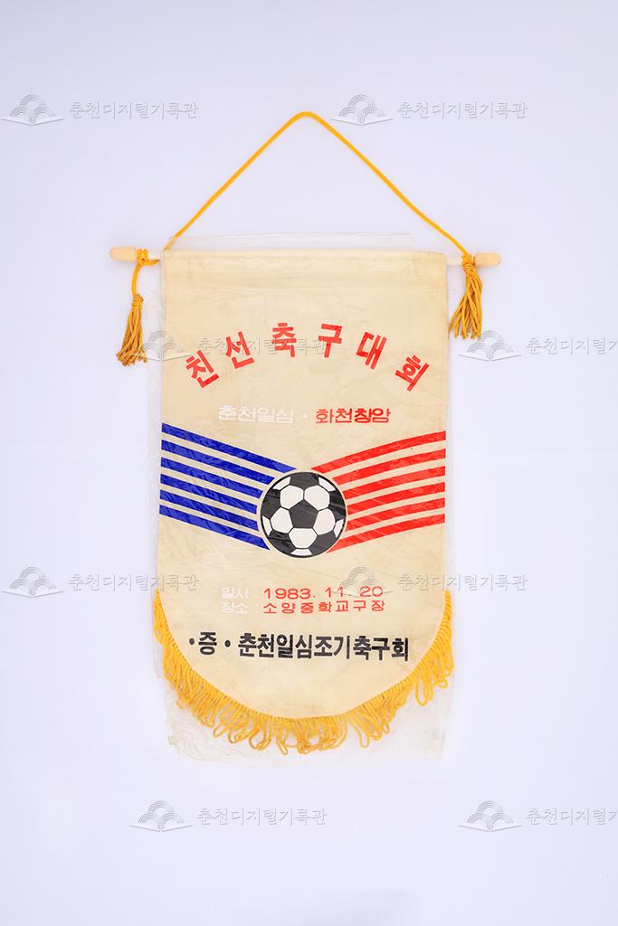 춘천일심, 화천창암 친선축구대회 페넌트 등록번호 00017972 생산일자 1983.11.20 생산지역 미상 생산자 춘천일심조기축구회 수집처 이춘희 소장자 춘천학연구소 내용 1983년 11월 20일 소양중학교 운동장에서 개최된 춘천일심조기축구회와 화천창암조기축구회간의 친선축구대회를 기념하기 위해 제작된 페넌트이다. 춘천일심조기축구회가 제작하였다. 자세히 보기 닫기 사용안내 비상업적 이용만 가능|©춘천디지털기록관 상업적 사용·수정·재배포는 저작권자 동의 필요 다운로드 목록보기