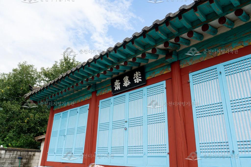숭모재 등록번호 00016231 생산일자 2025 생산지역 춘천시 동면 감정리 121-3 생산자 미상 수집처 아이앤미디어 소장자 춘천학연구소 내용 숭모재는 인조 시대에 해남 현감을 지낸 강릉최씨 최충걸을 향사하기 위한 재실이다. [출처] 동면 마을지 사용안내 비상업적 이용만 가능|©춘천디지털기록관 상업적 사용·수정·재배포는 저작권자 동의 필요 다운로드 목록보기