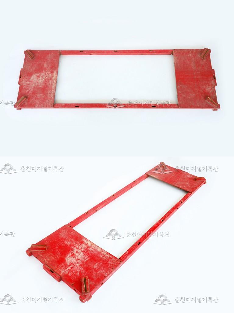 상여는 망자의 시신을 장지까지 운반하는 도구이다. 목상여는 목재를 사용하여 조립식으로 만든 상여이다. 춘천학연구소에 기증된 상여는 춘천시 서면 방동리에서 사용되었던 상여로 1990년대 이전에 제작된 걸로 추정된다. 상여몸체의 상단에 해당하는 운각판으로 붉은색 구조물로 되어 있다. 상여의 덮개와 상여몸체의 기둥을 연결해 주는 기능을 한다.