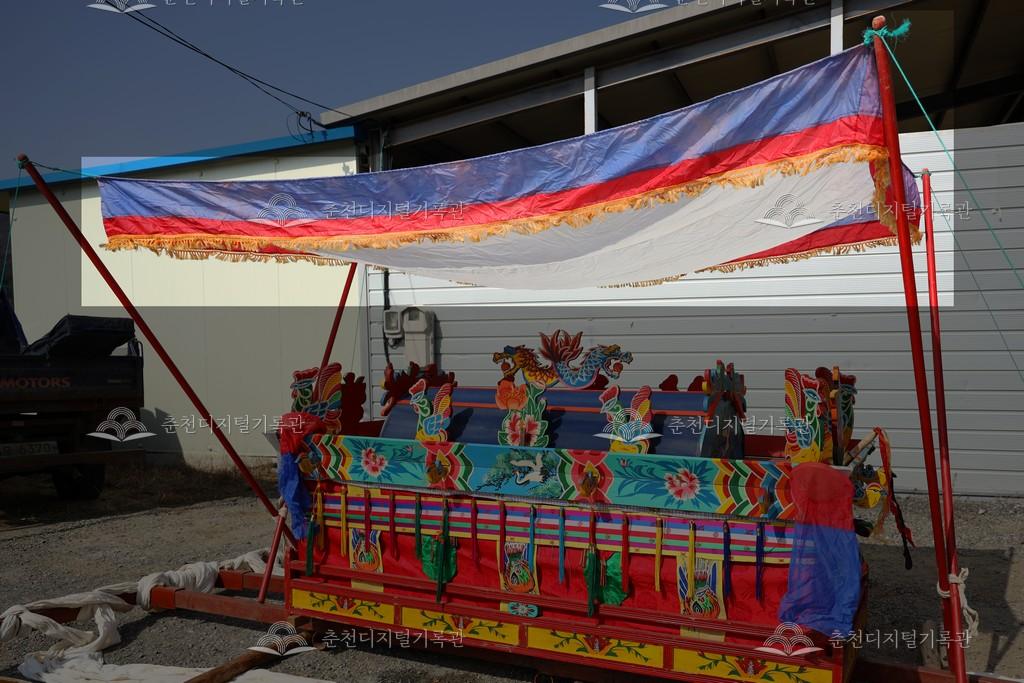 상여는 망자의 시신을 장지까지 운반하는 도구이다. 목상여는 목재를 사용하여 조립식으로 만든 상여이다. 춘천학연구소에 기증된 상여는 춘천시 서면 방동리에서 사용되었던 상여로 1990년대 이전에 제작된 걸로 추정된다. 상여 위에 덮는 차양으로 양장 또는 차일이라고 부른데, 방동리에서는 "주름관"이라고 부른다. 주름관(차양) 앞 뒤로 청사초롱을 매단다.