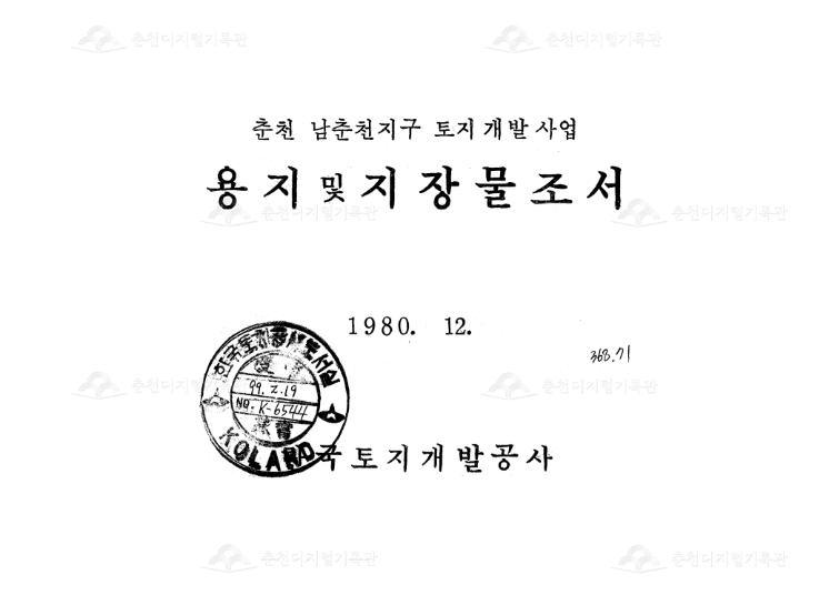 춘천 남춘천지구 토지개발사업 용지 및 지장물 조서_한국토지개발공사