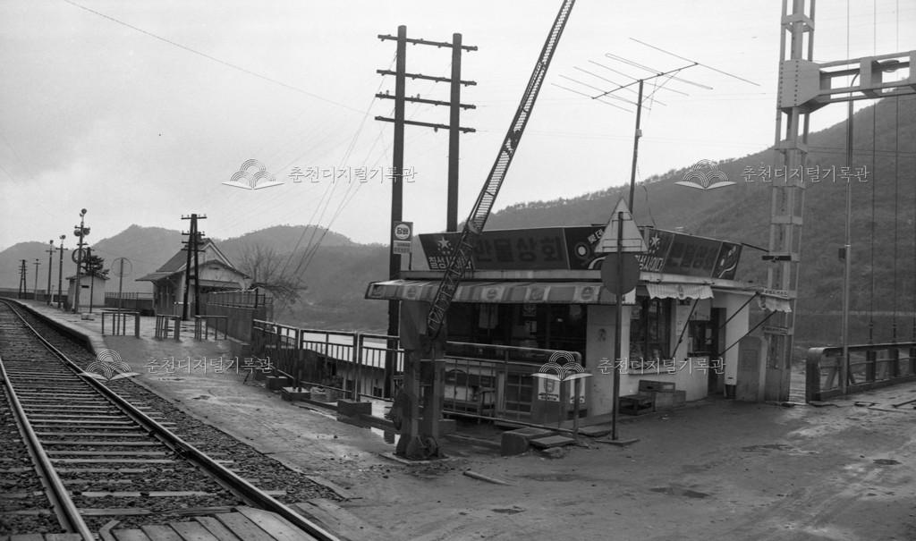 강촌역 등선교 통제소 등록번호 00016514 생산일자 1979 생산지역 남산면 강촌리 생산자 미상 수집처 이경애 소장자 이경애 내용 1979년 남산면 옛 강촌역사와 등선교(출렁다리) 입구 매점(만물상회)과 건널목 차단기의 모습이다. 사용안내 비상업적 이용만 가능|©춘천디지털기록관 상업적 사용·수정·재배포는 저작권자 동의 필요 다운로드 목록보기