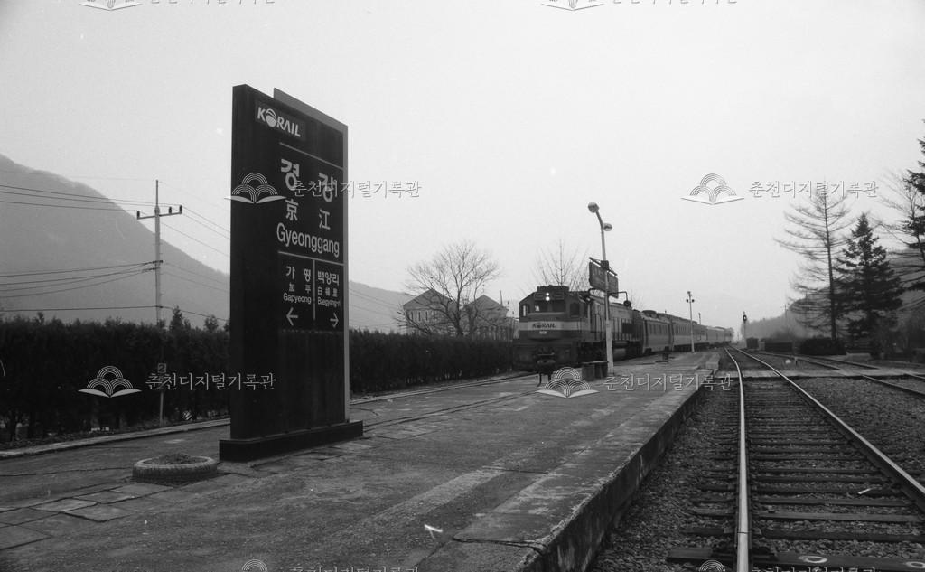경강역 역사 및 플랫폼 전경 등록번호 00016521 생산일자 2000 생산지역 남산면 서천리 생산자 미상 수집처 이경애 소장자 이경애 내용 남산면 서천리에 있는 경강역 역사, 광장, 플랫폼 전경이다. 1939년 경춘선 개통시 서천역이었다가 1955년 경기도와 강원도 경계에 있다고 하여 경강역으로 개칭하였다. 영화 편지의 촬영지로 유명하다. 자세히 보기 닫기 사용안내 비상업적 이용만 가능|©춘천디지털기록관 상업적 사용·수정·재배포는 저작권자 동의 필요 다운로드 목록보기