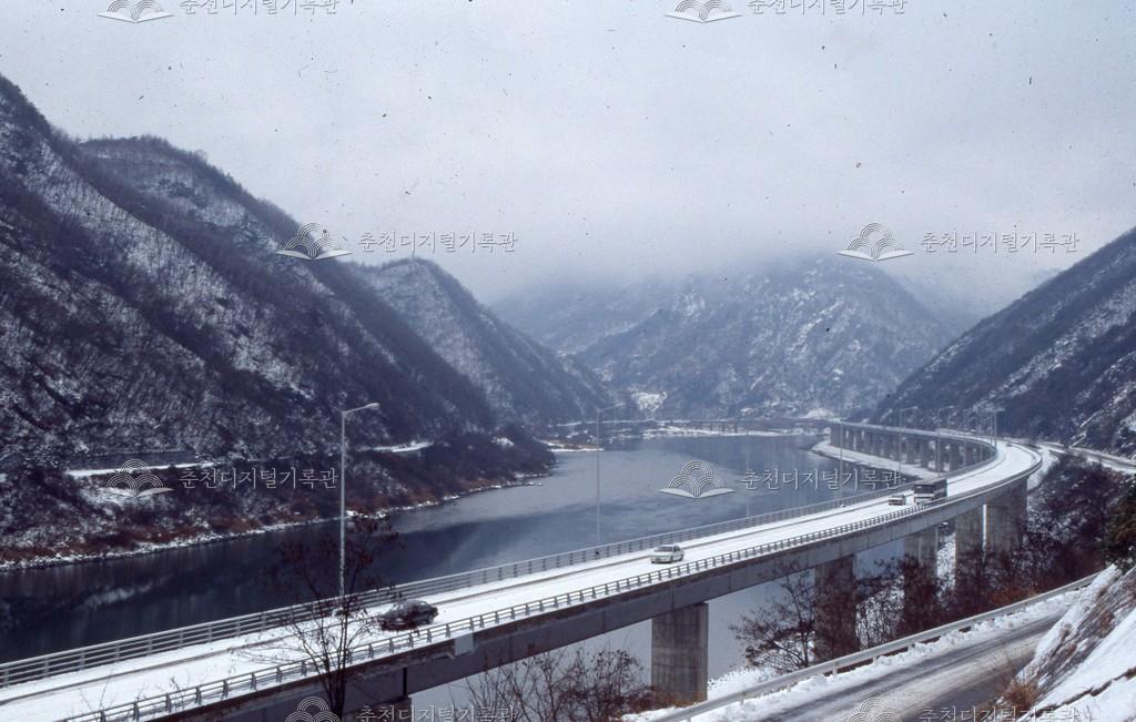 경춘국도 등록번호 00016526 생산일자 미상 생산지역 서면 생산자 미상 수집처 이경애 소장자 이경애 내용 새롭게 건설된 등선교(고가도로)로 일방통행이 가능해졌다. 겨울철 삼악산 주변 경춘국도 풍경이다. 사용안내 비상업적 이용만 가능|©춘천디지털기록관 상업적 사용·수정·재배포는 저작권자 동의 필요 다운로드 목록보기
