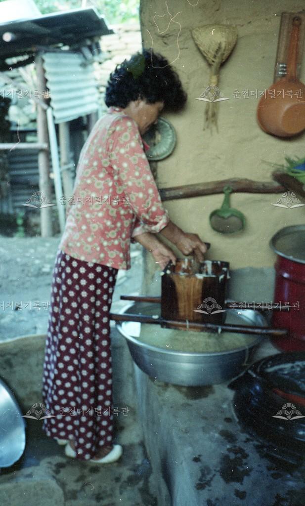 올챙이 국수를 만드는 모습 등록번호 00016558 생산일자 미상 생산지역 동면 생산자 미상 수집처 이경애 소장자 이경애 내용 1980년대 동면 가정집 부엌에서 별식으로 올챙이국수를 만드는 모습이다. 사용안내 비상업적 이용만 가능|©춘천디지털기록관 상업적 사용·수정·재배포는 저작권자 동의 필요 다운로드 목록보기
