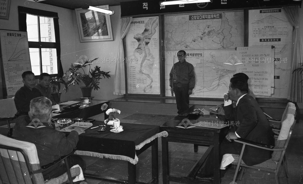 1970년대 소양강댐 공사 보고 등록번호 00016798 생산일자 미상 생산지역 신북읍 천전리 생산자 미상 수집처 이경애 소장자 이경애 내용 소양강 다목적댐 방문인사에게 공사 현황을 설명하는 공무원 사용안내 비상업적 이용만 가능|©춘천디지털기록관 상업적 사용·수정·재배포는 저작권자 동의 필요 다운로드 목록보기