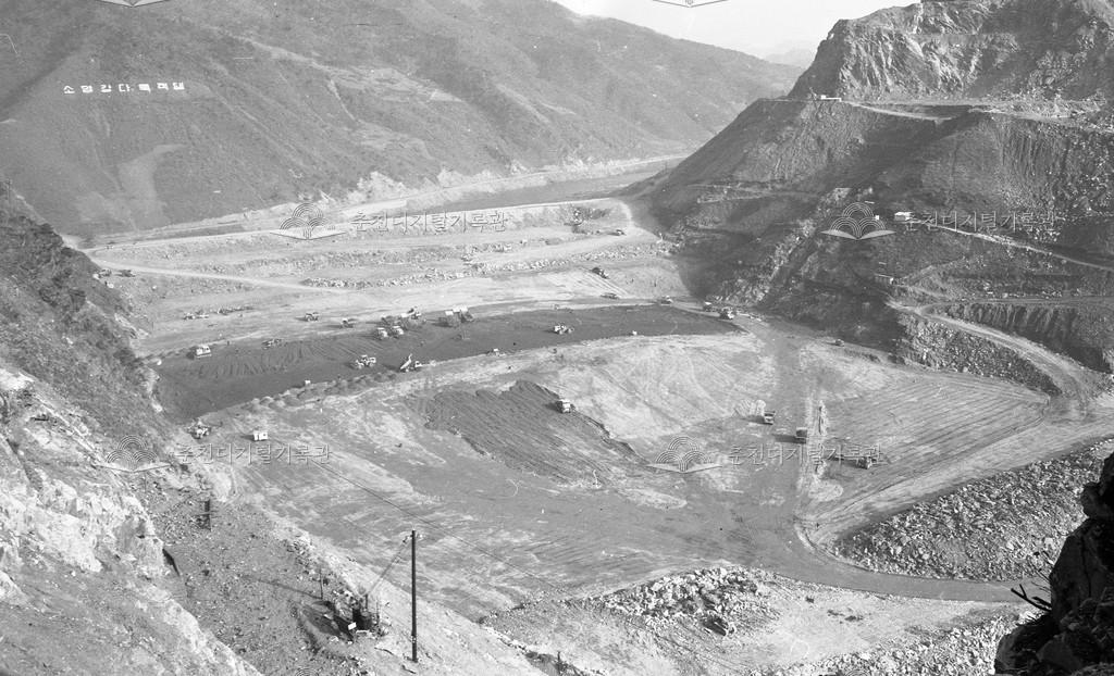 1970년대 소양강댐 공사 현장 등록번호 00016799 생산일자 미상 생산지역 신북읍 천전리 생산자 미상 수집처 이경애 소장자 이경애 내용 소양강 다목적댐 여수로 공사 중 사용안내 비상업적 이용만 가능|©춘천디지털기록관 상업적 사용·수정·재배포는 저작권자 동의 필요 다운로드 목록보기