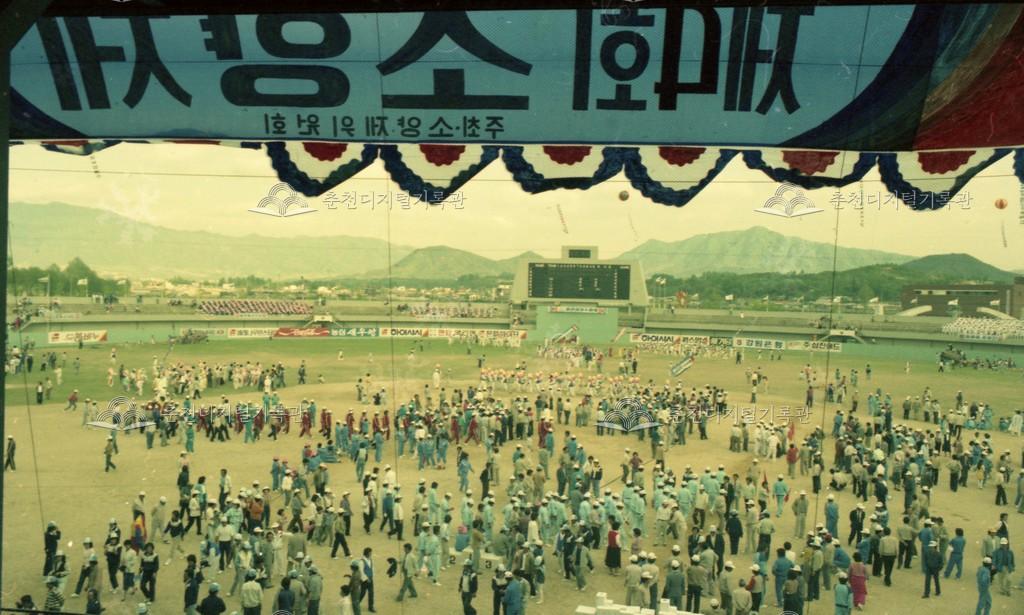 제4회 소양제 모습 등록번호 00016814 생산일자 1986 생산지역 강남동 온의동 생산자 미상 수집처 이경애 소장자 이경애 내용 온의동 야구장에서 열린 제4회 소양제 널뛰기 시합 사용안내 비상업적 이용만 가능|©춘천디지털기록관 상업적 사용·수정·재배포는 저작권자 동의 필요 다운로드 목록보기