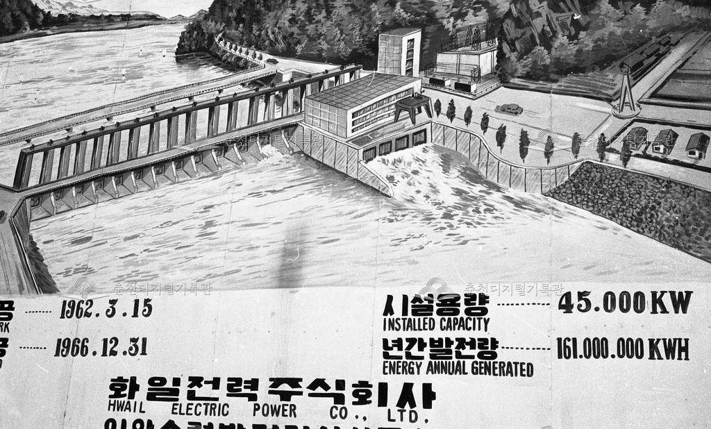 의암댐 공사 조감도 등록번호 00016851 생산일자 1964 생산지역 신동면 의암리 생산자 미상 수집처 미상 소장자 이경애 내용 1962년 신동면 의암리 의암댐 건설 조감도 사용안내 다운로드 목록보기