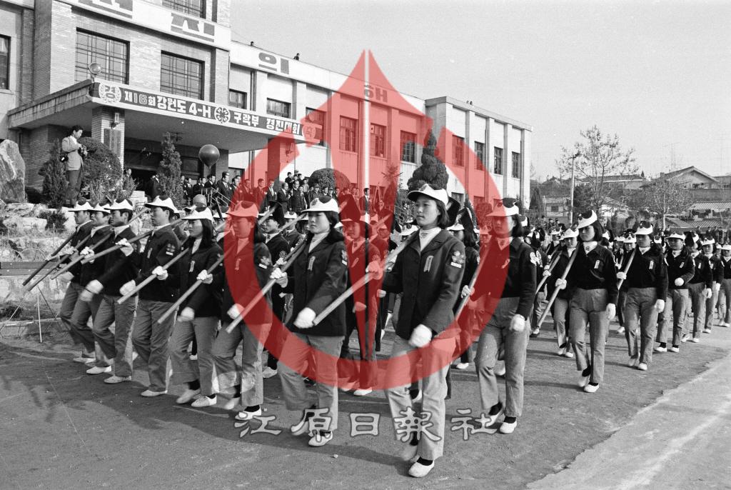 1970년 옥천동 춘천시청에서 개최한 제16회 강원도 4-H 구락부 경진대회 및 농촌지도자대회에서 농촌 청소년들이 괭이를 메고 입장을 하고 시가 행진을 벌였다.