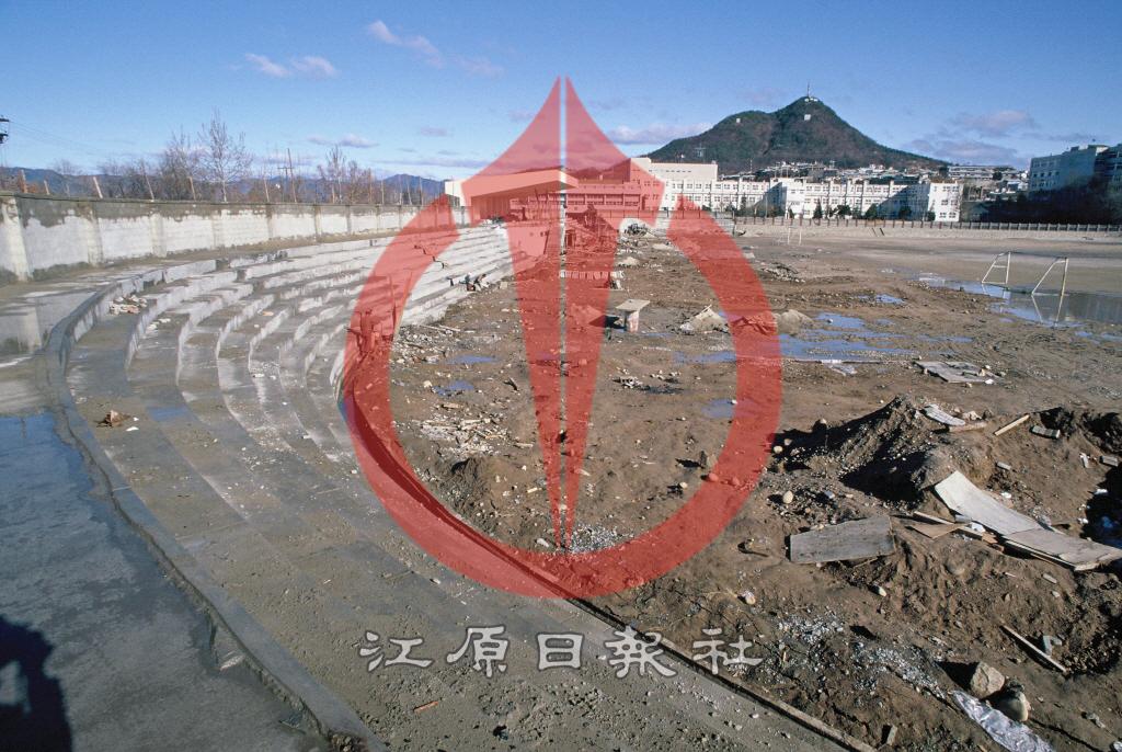 1986년 소양로3가(소양로)춘천고등학교 운동장 야구장 보수공사. 사진 뒷편으로 춘천고 교사와 봉의산이 보인다.