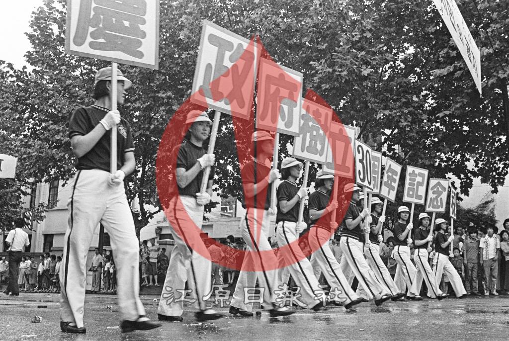 1978년 8월 16일 중앙로1가 중앙로터리에서 도청방향. 건국 30주년 춘천여자고등학교(춘천여고) 피켓 행진