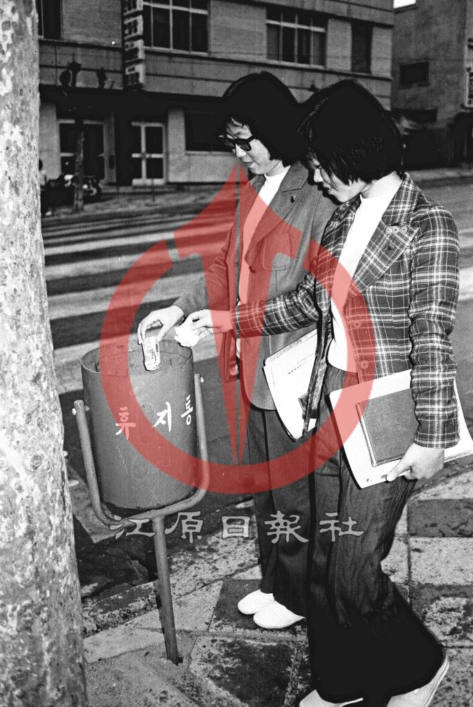 길거리 휴지통 설치 등록번호 00017648 생산일자 1975 생산지역 중앙로1가 생산자 강원일보 수집처 강원일보 소장자 강원일보 내용 중앙로1가 강원일보 앞 길거리 휴지통 설치 사용안내 © 강원일보 | 본 사진은 저작권법의 보호를 받습니다. 무단 복제·활용 시 민형사상 책임이 발생할 수 있습니다. ※ 사용 문의: 강원일보 자료조사부 033-258-1396 목록보기