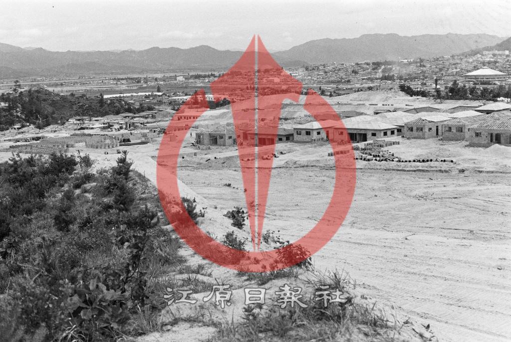 퇴계동 남춘천 경공업단지 토목공사 현장.(현 남춘천역사 부근) 사진 오른쪽에 효자동 춘천실내체육관(현 양우아파트)가 보인다.