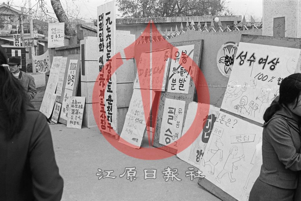 1976년도 교동 춘천여자고등학교에서 열린 강원도 춘천지구 대학입학 예비고사 제3고사장 교문 앞