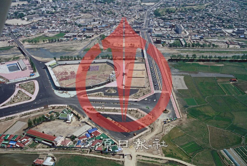 제9회 전국소년체육대회(전국소년체전)가 열린 온의동 춘천종합운동장, 춘천야구장(항공사진). 사진 하단 우측은 퇴계동