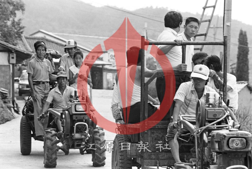버스, 택시 기사 단체 파업으로 경운기 출근. 장소미상