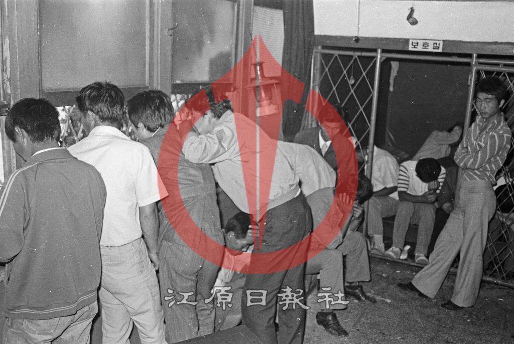 야간통행 위반자 연행 등록번호 00018570 생산일자 1976 생산지역 미상 생산자 강원일보 수집처 강원일보 소장자 강원일보 내용 보호실 구금 사용안내 © 강원일보 | 본 사진은 저작권법의 보호를 받습니다. 무단 복제·활용 시 민형사상 책임이 발생할 수 있습니다. ※ 사용 문의: 강원일보 자료조사부 033-258-1396 목록보기