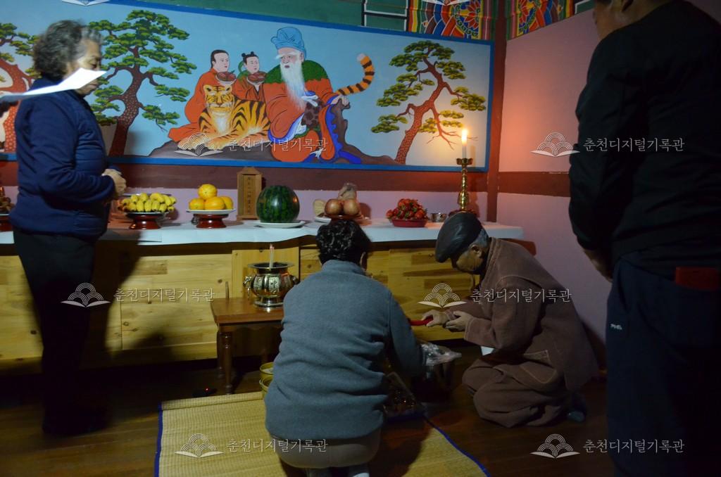 증1리 산신제 등록번호 00006868 생산일자 2024.04.11 생산지역 춘천시 신동면 증1리 생산자 이학주 수집처 이학주 소장자 춘천학연구소 내용 신동면 증1리에서는 음력 3월 3일에 금병산 산신각에서 산신제를 지낸다. 제물을 준비하는 마을회관에는 송침을 하여 부정타지 않게 한다. 백설기는 산신각에서 직접 준비하고 제물이 모두 준비되면 산신제를 올린다. 산신제가 끝나면 마을주민들이 소지를 올린다. 자세히 보기 닫기 사용안내 비상업적 이용만 가능|©춘천디지털기록관 상업적 사용·수정·재배포는 저작권자 동의 필요 다운로드 목록보기