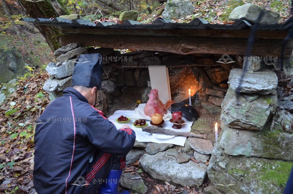 추곡1리에서 수구제를 지내는 모습이다. 수구제는 산신당 옆에 있는 수구당에서 지내며 산신제와 함께 매년 음력 9월 9일 지낸다. 수구당에 차려진 제물 진설 모습이고, 제관이 제를 올리는 장면이다. 산신제와 수구제가 모두 끝나면 개울가에서 마을주민들이 음복과 아침식사를 한다.