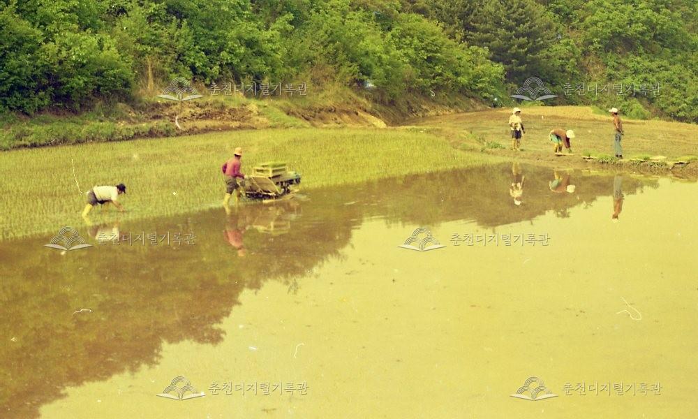 1990년대 모내기 풍경 등록번호 00006931 생산일자 미상 생산지역 장소미상 생산자 오일주 수집처 오일주 소장자 춘천학연구소 내용 모내기 풍경 사용안내 비상업적 이용만 가능|©춘천디지털기록관 상업적 사용·수정·재배포는 저작권자 동의 필요 다운로드 목록보기